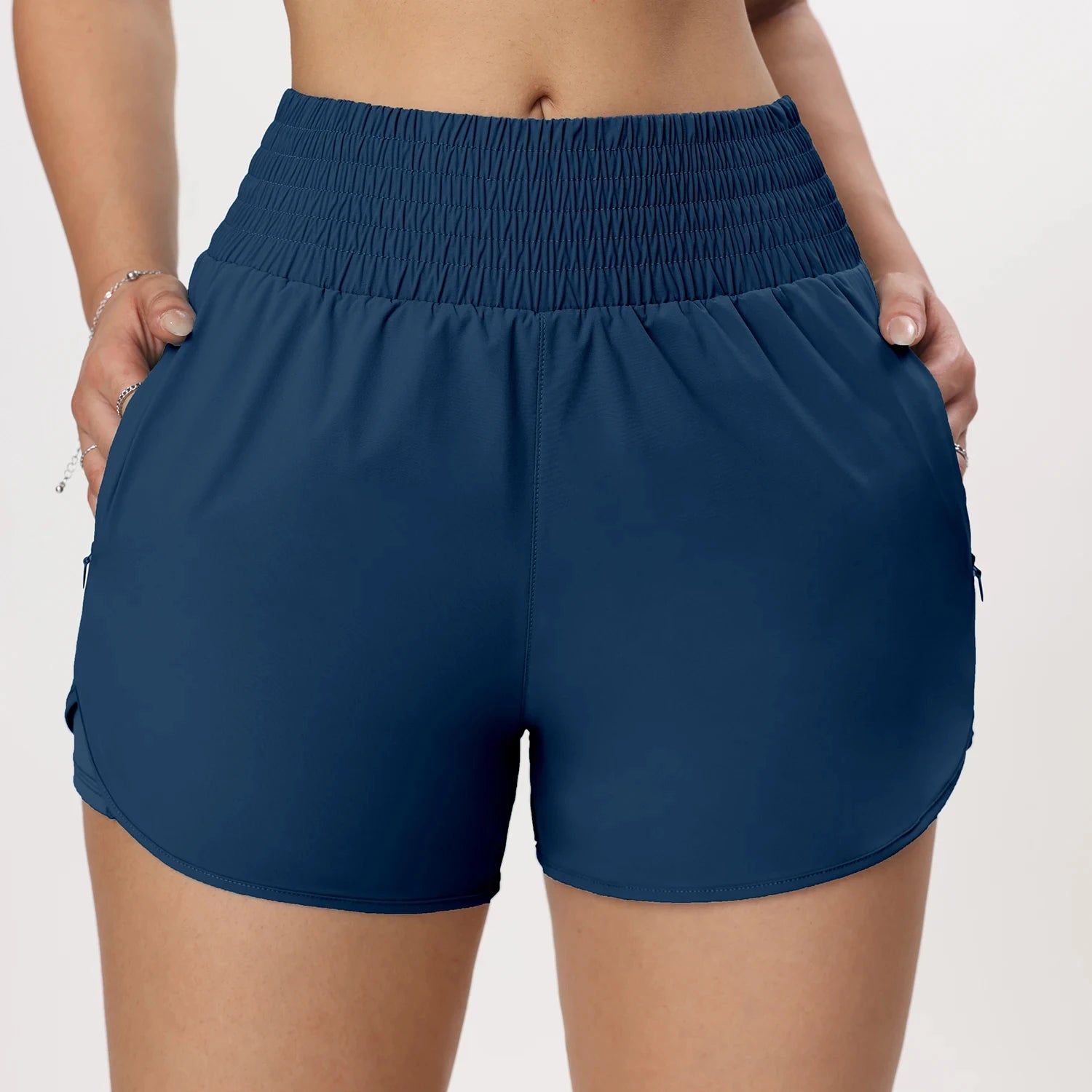 CHRLEISURE Women's Running Shorts with Zipper Pockets Quick-Dry Gym Shorts with Liner Elastic Waist Band Athletic Shorts